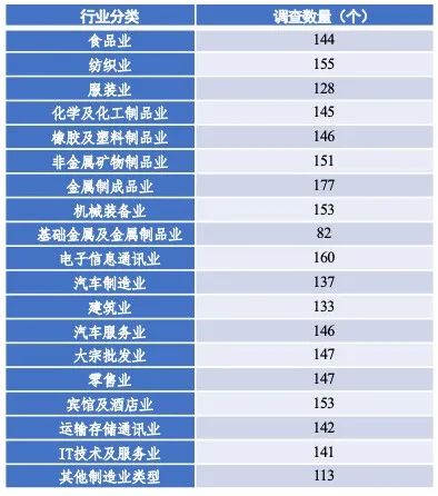 測(cè)量方法為隨機(jī)分層抽樣調(diào)查法,其中三個(gè)層次分別為企業(yè)規(guī)模、企業(yè)門類和(國家層級(jí)以下的)區(qū)域分布。