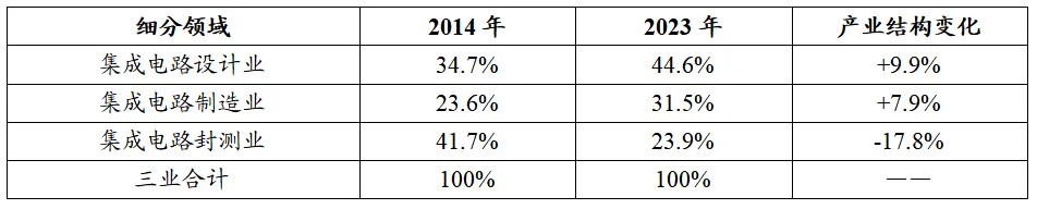 表1 2014-2023年我國集成電路產業三大主業產業結構情況