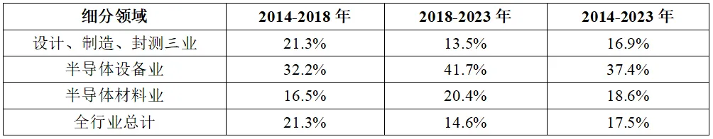 表3 2014-2023年我國集成電路支撐業銷售收入增速變化情況