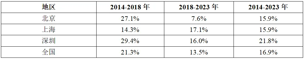 表格信息來源:北國咨根據北京、上海、深圳各協會數據整理測算