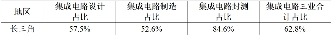 從產業規模來看,長三角地區集成電路產業優勢地位日益凸顯。據長三角集成電路融合創新發展產業聯盟數據(表8),2023年上海、江蘇、浙江、安徽四地集成電路產業收入規模占全國的比重超過60%。其中設計、制造、封測三業收入規模占全國的比重分別為57.5%、52.6%和84.6%,長三角地區進一步確立其中國集成電路產業基礎最扎實、產業鏈最完整、技術最先進的區域優勢地位。