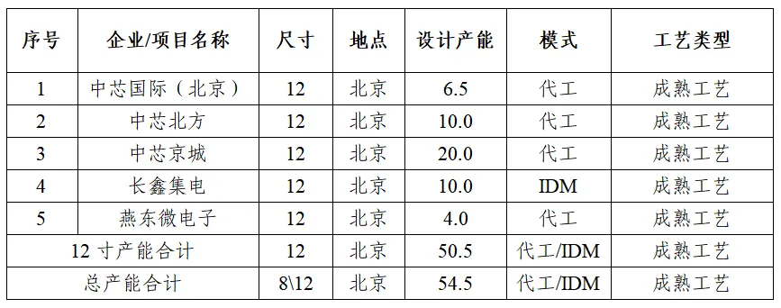 表格信息來源:北國咨根據集微咨詢、北京半導體行業協會公開信息整理