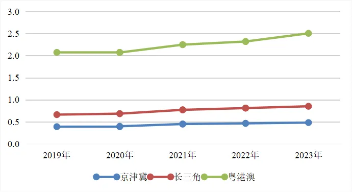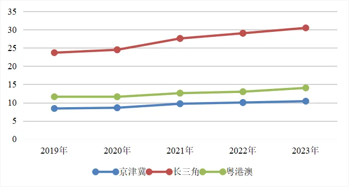 3 數(shù)據(jù)來自三大區(qū)域2013年-2023年統(tǒng)計公報。