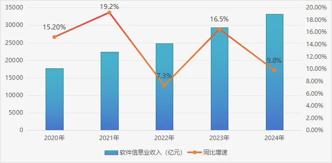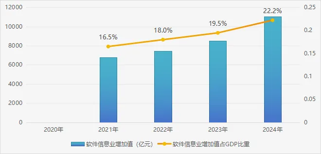 “十四五”以來(lái),北京信息軟件業(yè)保持高速增長(zhǎng),成為全市經(jīng)濟(jì)高質(zhì)量發(fā)展的核心支撐。2021年北京信息軟件業(yè)1實(shí)現(xiàn)收入2.2萬(wàn)億元,2024年收入突破3.3萬(wàn)億元,僅用三年時(shí)間再邁上一個(gè)萬(wàn)億級(jí)臺(tái)階,占全國(guó)信息軟件業(yè)比重近四分之一。2024年,北京信息軟件業(yè)實(shí)現(xiàn)增加值11068.8億元,同比增長(zhǎng)11.0%,占地區(qū)生產(chǎn)總值的22.2%,成為全市經(jīng)濟(jì)的第一支柱。