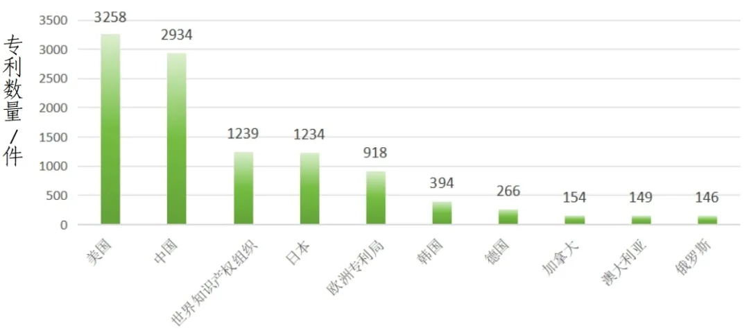 圖1 eVTOL領(lǐng)域?qū)@暾?qǐng)量排名前十的國家和組織(截止到2024年)