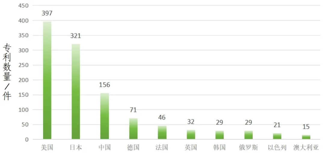圖2 eVTOL領(lǐng)域PCT申請(qǐng)量排名前十的國家(截止到2024年)