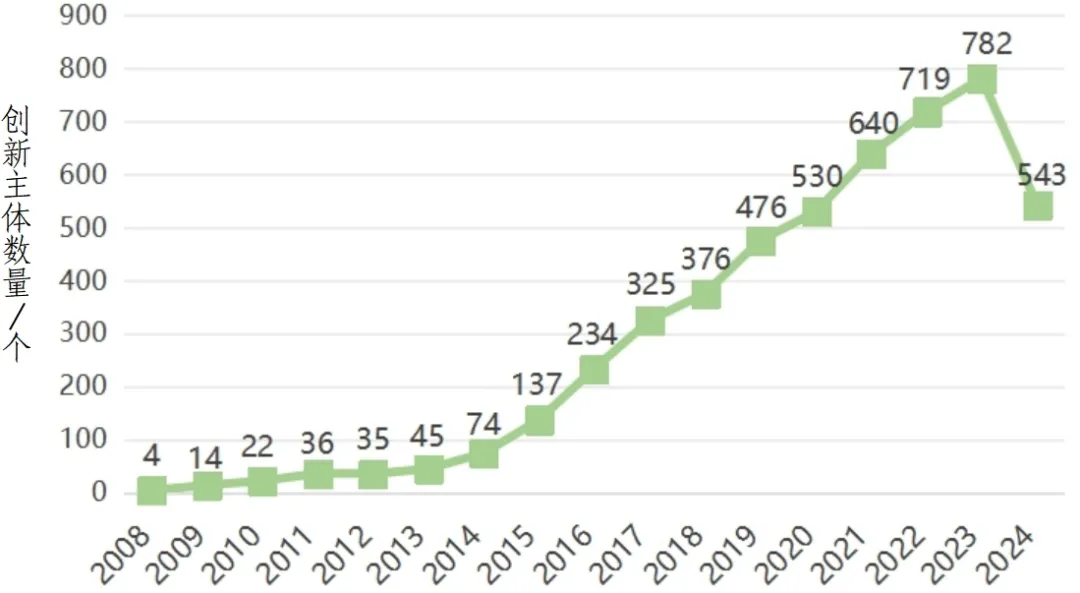 圖3 全球eVTOL領(lǐng)域創(chuàng)新主體數(shù)量變化趨勢(shì)