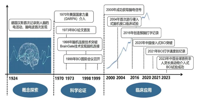 圖1 腦機(jī)接口醫(yī)學(xué)應(yīng)用的發(fā)展歷程