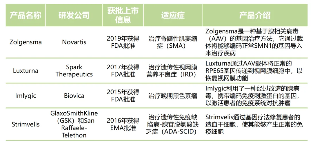 截至目前,合成生物技術在基因治療領域已有一些產品獲得了國外監管機構的批準,進入了市場。