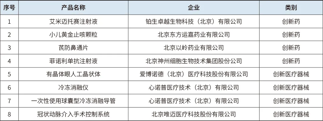 表1 2025年北京市已獲批創(chuàng)新藥械品種