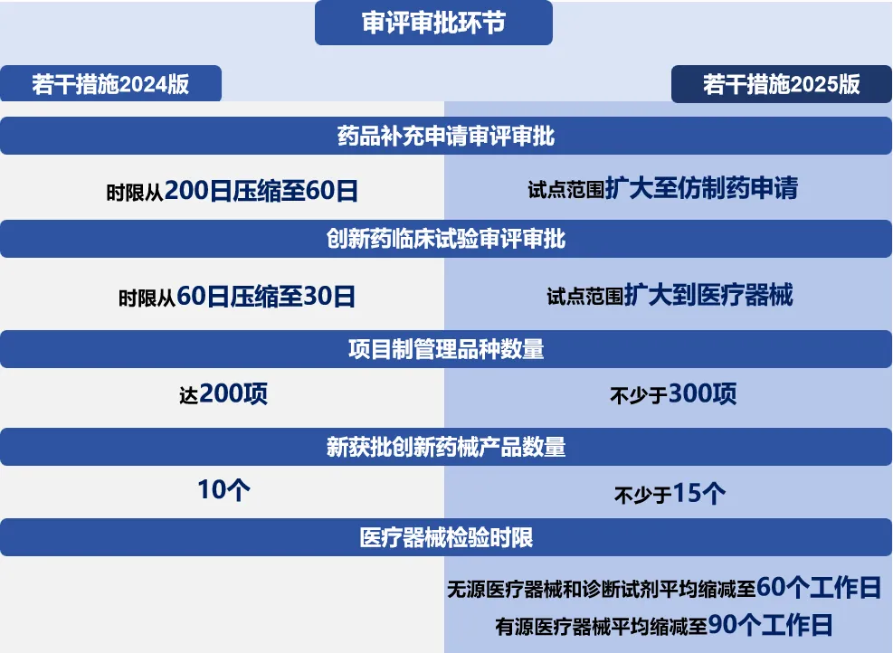 臨床試驗審評審批方面,持續(xù)深化國家藥監(jiān)局相關(guān)試點工作,將優(yōu)化創(chuàng)新藥臨床試驗審評審批試點擴(kuò)大到醫(yī)療器械,將藥品補(bǔ)充申請審評審批試點爭取擴(kuò)大至仿制藥申請。藥械檢驗檢測能力方面,首次明確提出提效量化目標(biāo),推動實現(xiàn)無源醫(yī)療器械和診斷試劑平均縮減至60個工作日、有源醫(yī)療器械平均縮減至90個工作日,持續(xù)保持醫(yī)療器械檢驗?zāi)芰θ珖I(lǐng)先地位。針對臨床急需藥械產(chǎn)品,在全國率先實現(xiàn)即收即檢。項目制管理方面,持續(xù)擴(kuò)大服務(wù)范圍和對象,較2024年新增納入項目制服務(wù)藥械品種數(shù)量100項,累計達(dá)300項。多項舉措助力藥械產(chǎn)品上市“加速度”,實現(xiàn)2025年新獲批創(chuàng)新藥械產(chǎn)品數(shù)量不少于15個。
