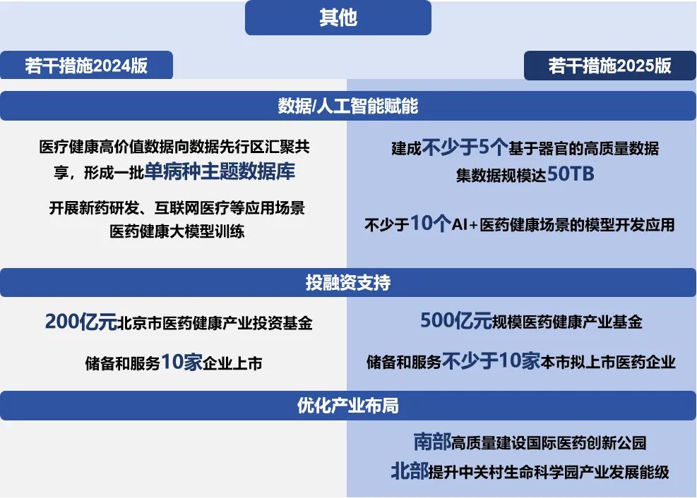 4月7日,北京市醫(yī)保局、市衛(wèi)生健康委等九部門聯(lián)合發(fā)布《北京市支持創(chuàng)新醫(yī)藥高質(zhì)量發(fā)展若干措施(2025年)》(簡稱《若干措施2025版》),從創(chuàng)新研發(fā)、臨床試驗、審評審批、生產(chǎn)制造、流通貿(mào)易、臨床應(yīng)用等全鏈條提出新一輪32條措施,持續(xù)完善“一條鏈”服務(wù),進(jìn)一步推動北京市“萬億”醫(yī)藥健康產(chǎn)業(yè)再上新臺階。這是北京市醫(yī)保局、市衛(wèi)生健康委等九部門連續(xù)第二年共同出臺支持創(chuàng)新醫(yī)藥高質(zhì)量發(fā)展的專項政策,2024年4月17日發(fā)布的《北京市支持創(chuàng)新醫(yī)藥高質(zhì)量發(fā)展若干措施(2024年)》(簡稱《若干措施》)實施成效顯著。本文對兩版政策進(jìn)行對比,結(jié)合北京支持創(chuàng)新醫(yī)藥發(fā)展的實際成效,梳理《若干措施2025版》的政策亮點。